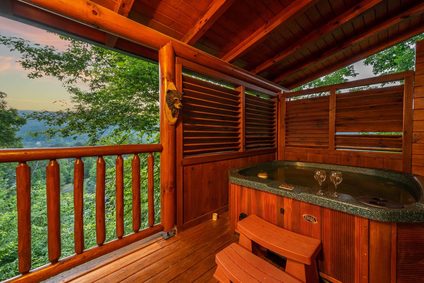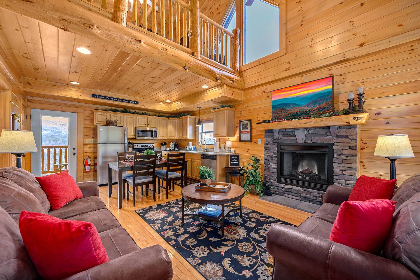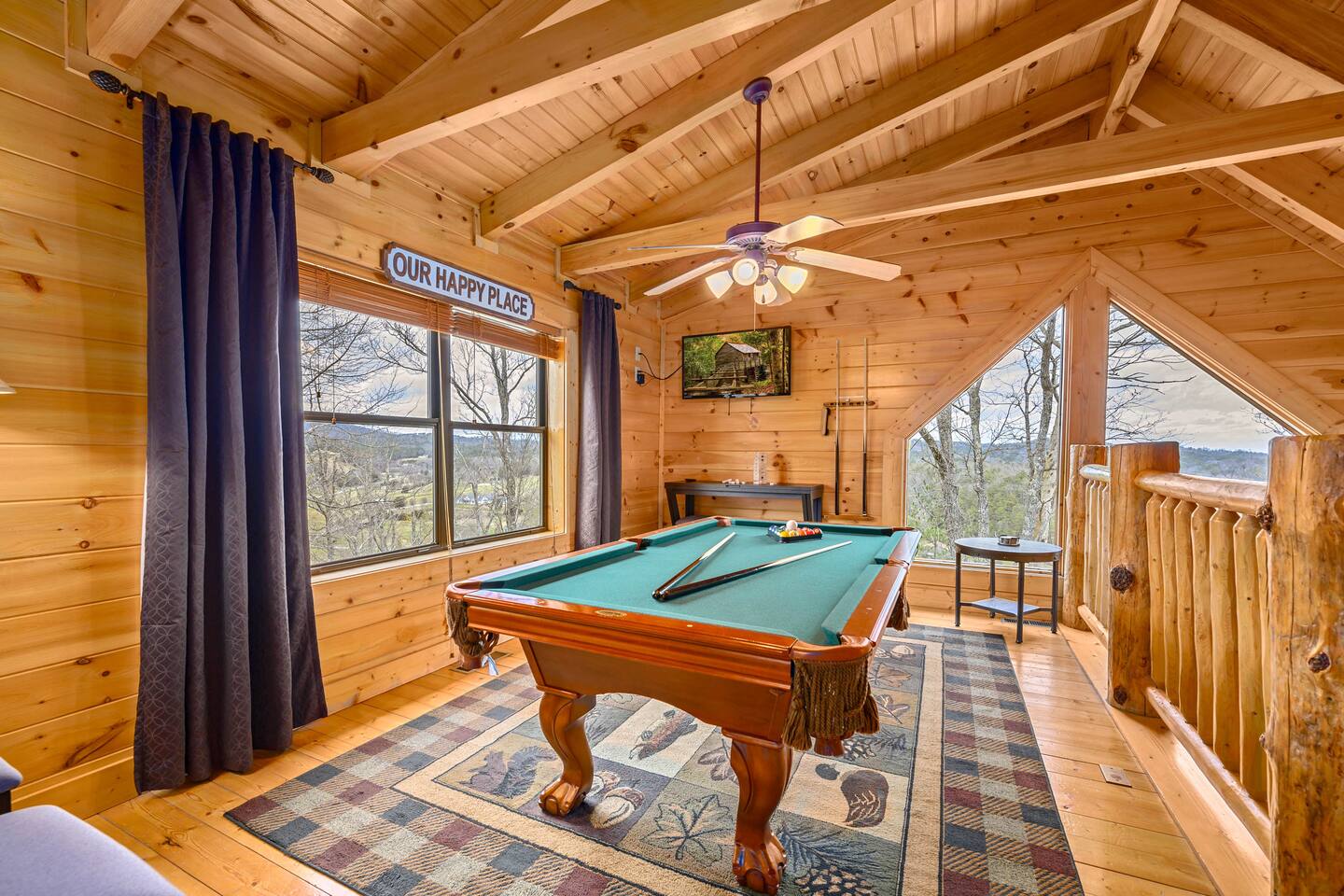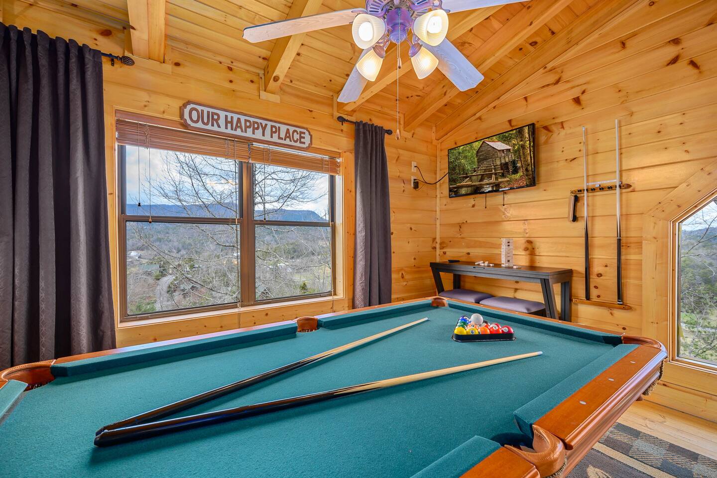 This gorgeous cabin with all the comforts of home offers beautiful mountain views & an easy drive to the Smoky Mountains, Dollywood, or downtown Pigeon Forge. Perfect for a romantic getaway or a family retreat. ◻ Hot tub ◻ Free toiletries ◻ Heart-shaped Jacuzzi tub ◻ Pool table ◻ Electric fireplace ◻ WiFi ◻ Resort pool (Memorial Day through Labor Day) ◻ Propane grill ◻ Smart TVs ◻ Close parking ◻ Two king suites ◻ Handheld shower heads ◻ Robes ◻ Queen sleeper ◻ No shared walls with cabins
