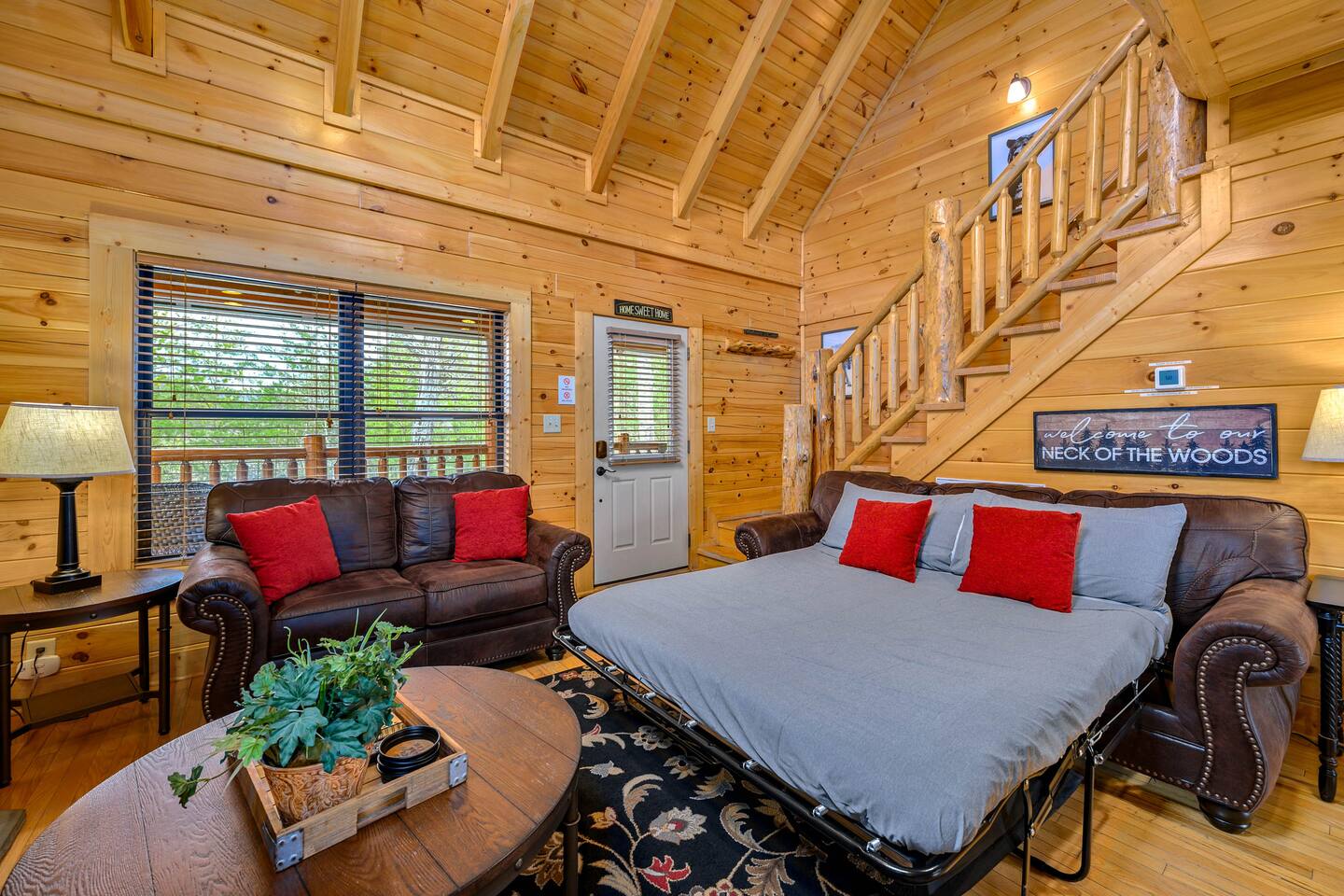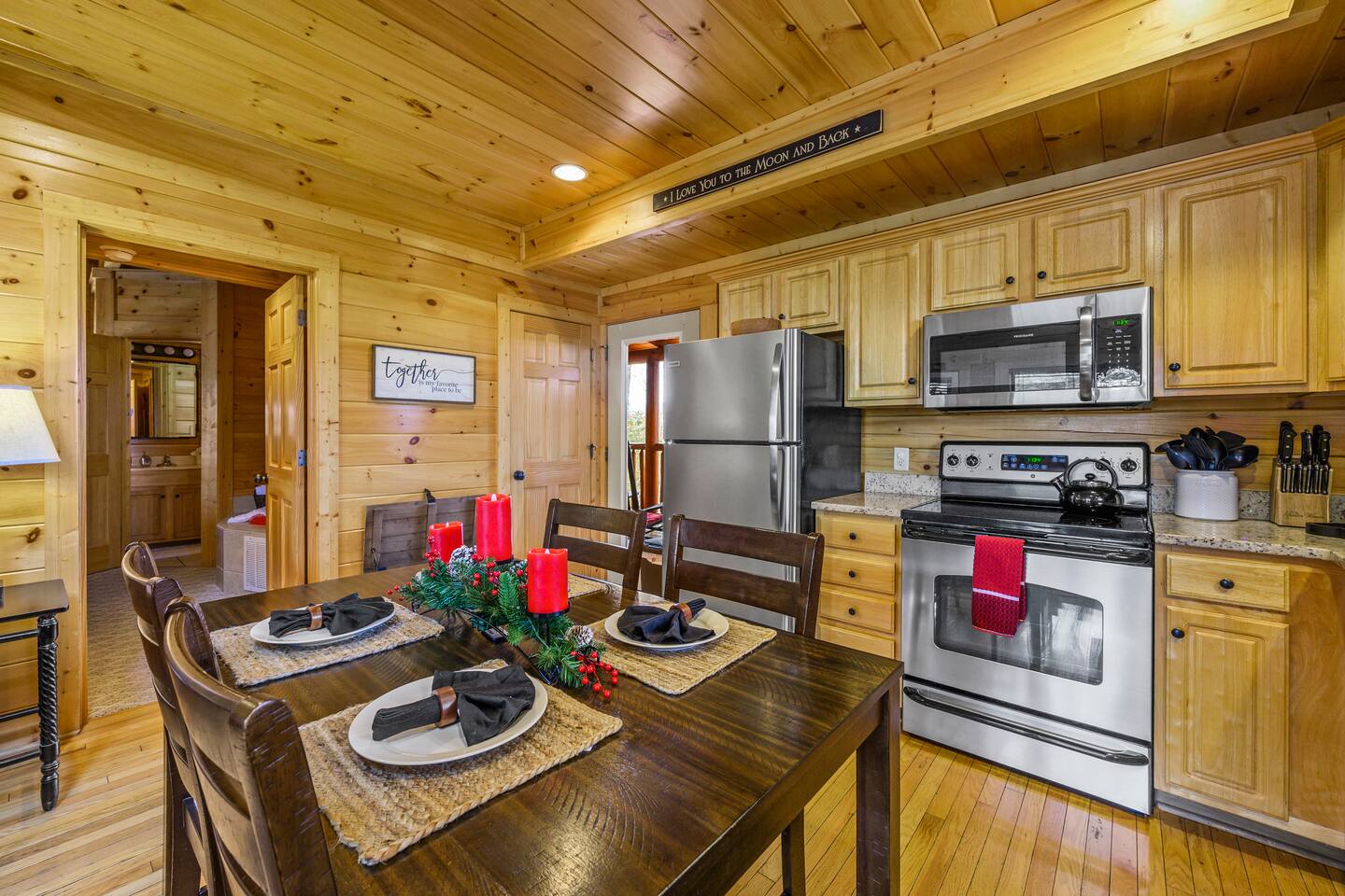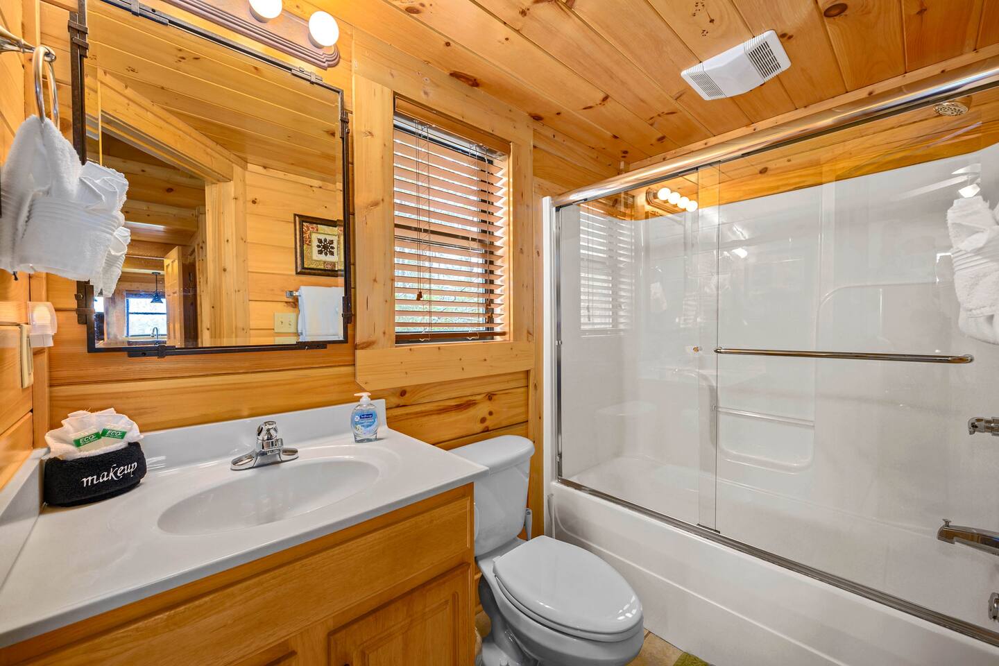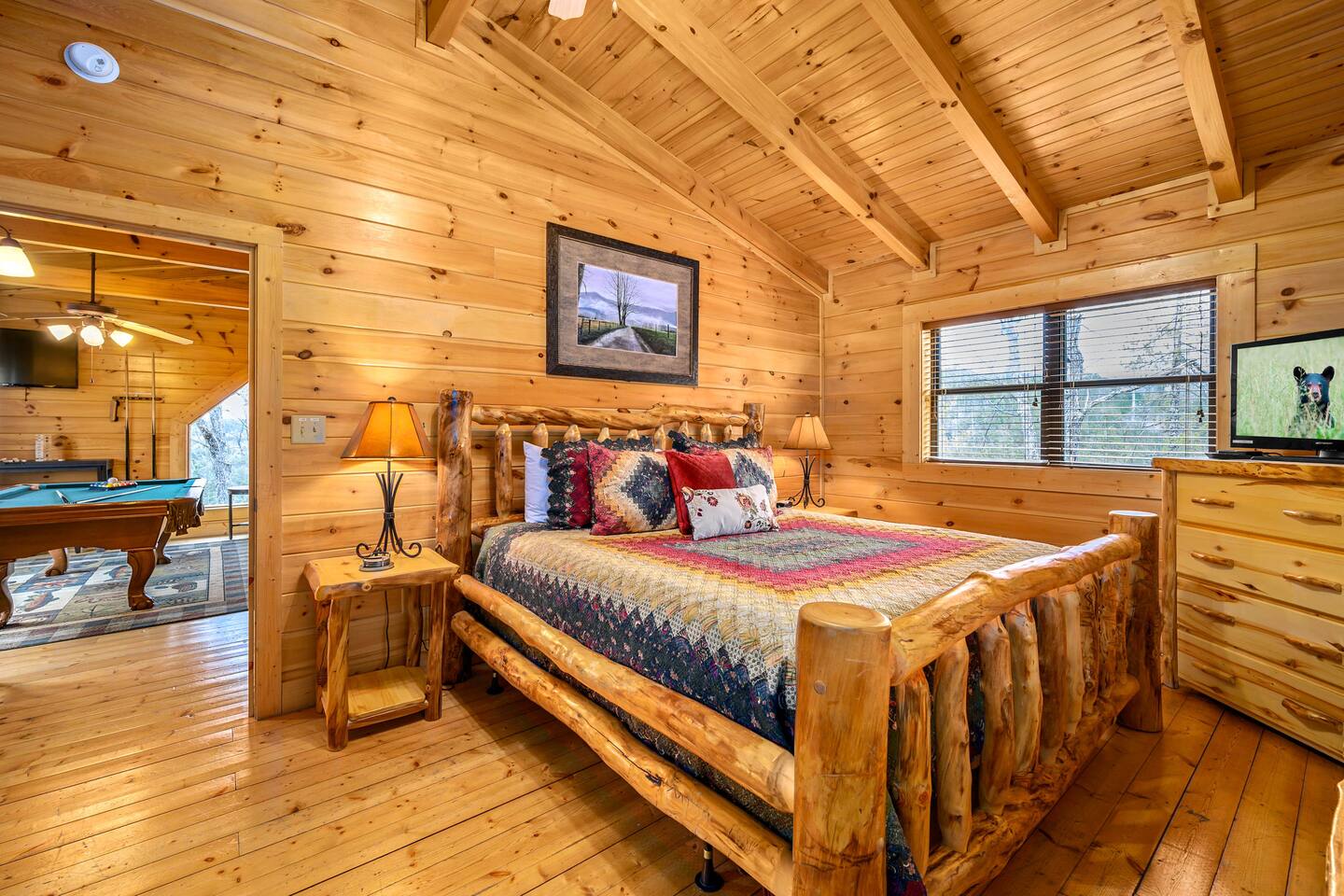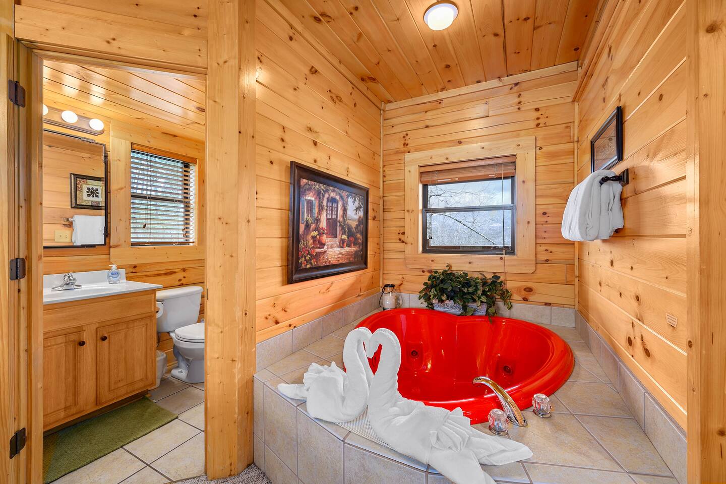 This gorgeous cabin with all the comforts of home offers beautiful mountain views & an easy drive to the Smoky Mountains, Dollywood, or downtown Pigeon Forge. Perfect for a romantic getaway or a family retreat. ◻ Hot tub ◻ Free toiletries ◻ Heart-shaped Jacuzzi tub ◻ Pool table ◻ Electric fireplace ◻ WiFi ◻ Resort pool (Memorial Day through Labor Day) ◻ Propane grill ◻ Smart TVs ◻ Close parking ◻ Two king suites ◻ Handheld shower heads ◻ Robes ◻ Queen sleeper ◻ No shared walls with cabins