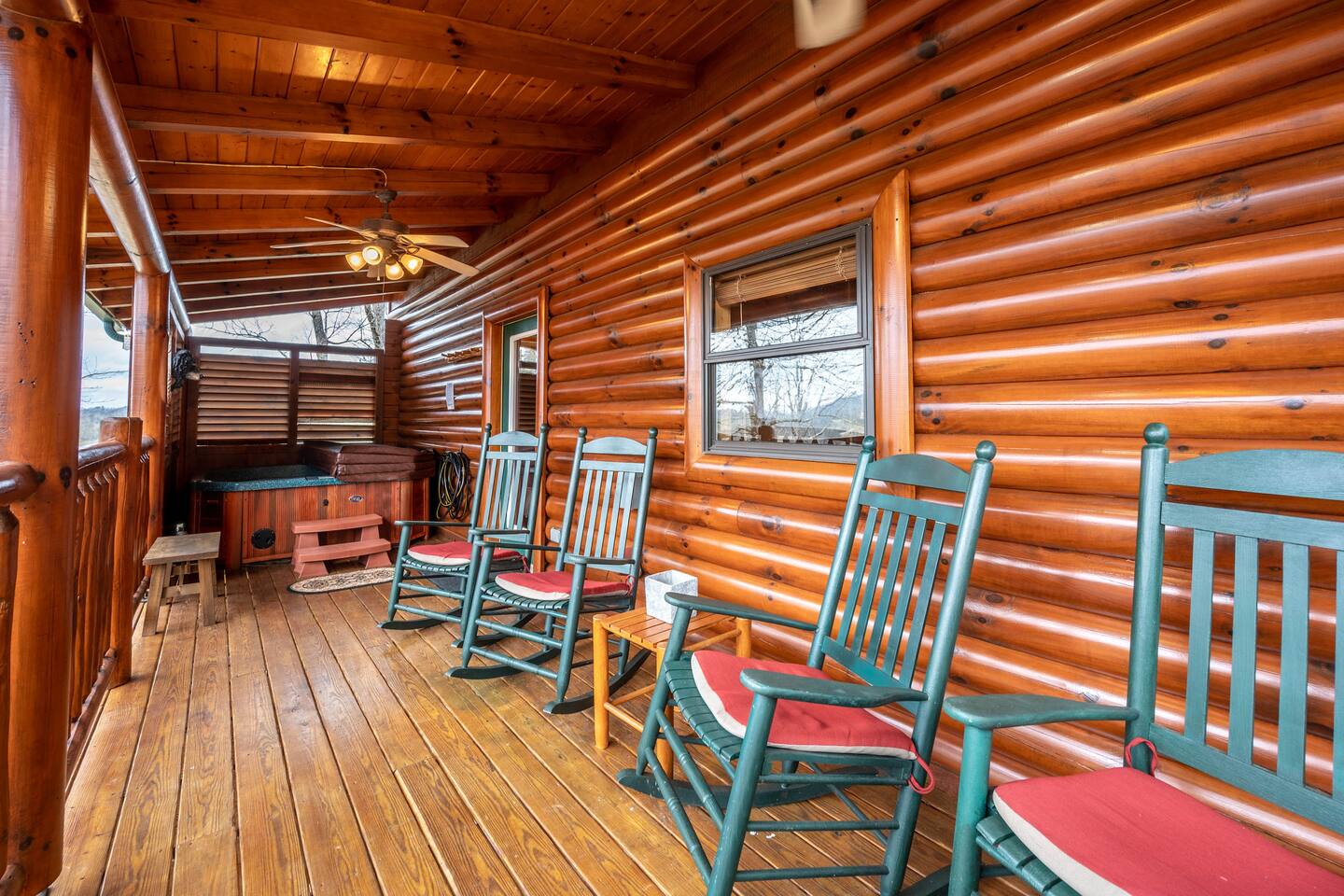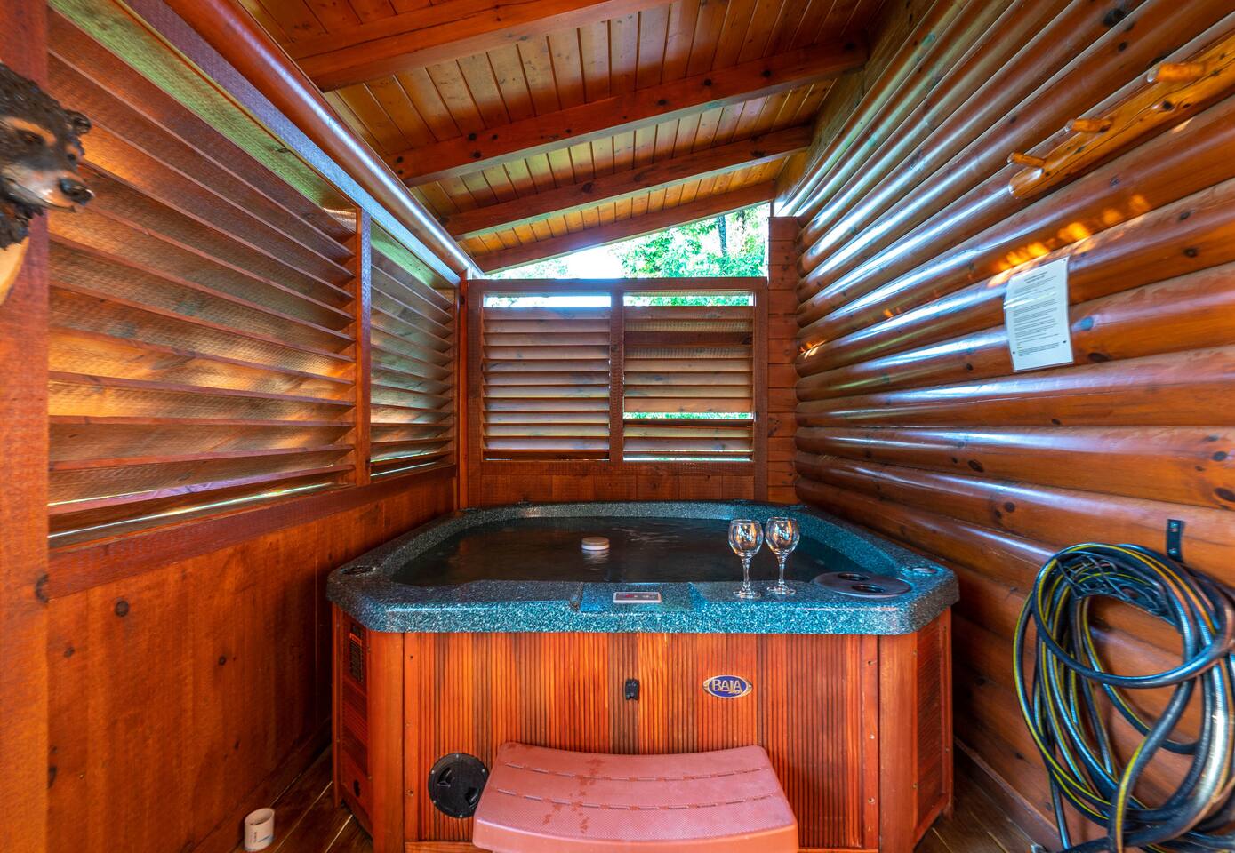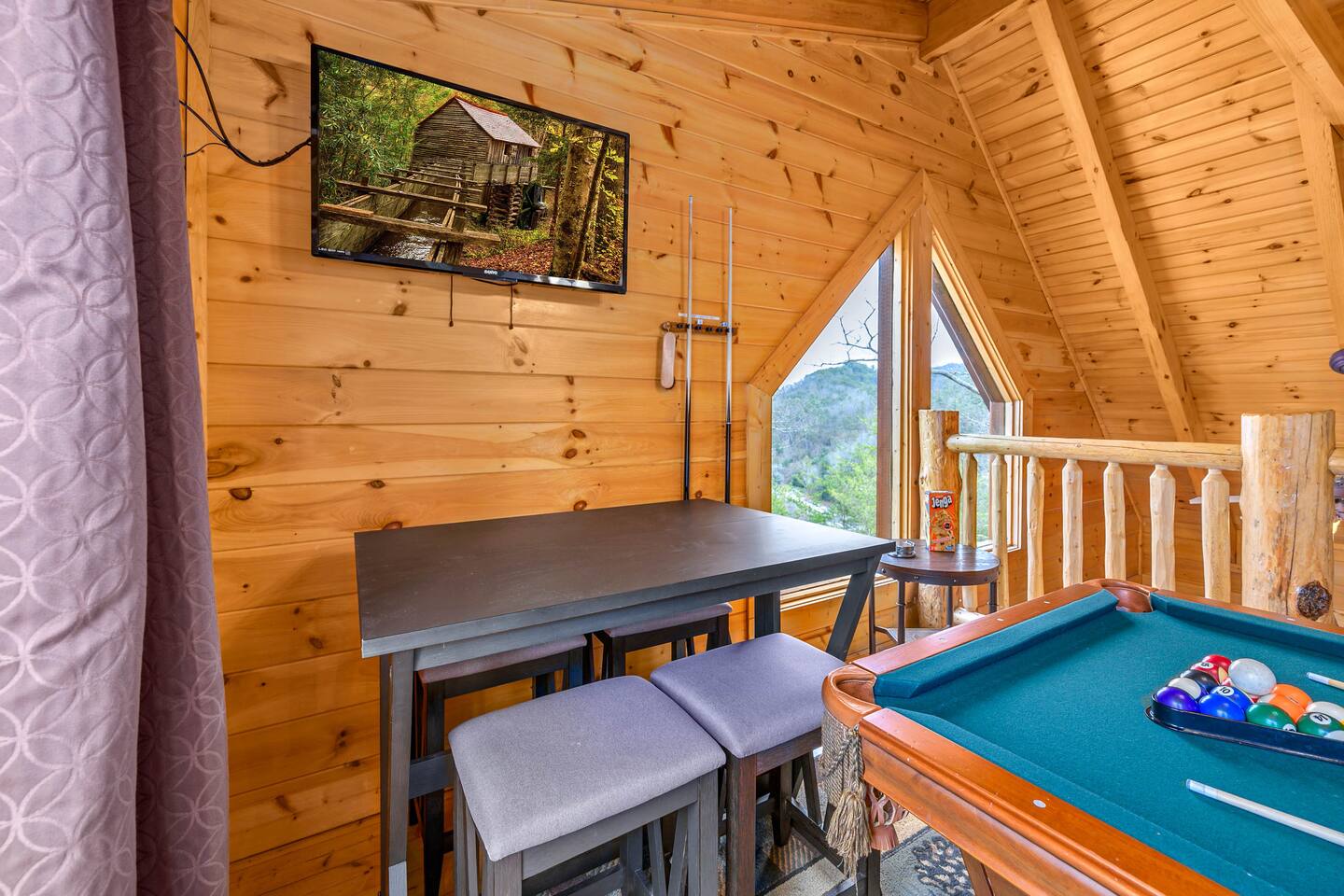 COVERED BRIDGE RESORT: ◻ 4 miles to downtown Pigeon Forge ◻ 15 miles to downtown Gatlinburg ◻ 9 miles to Dollywood ◻ Wide paved roads ◻ No steep, windy roads ◻ No mountain driving required ◻ Pool (Outdoor community pool open Memorial Day through Labor Day) ◻ Next to historic Walden's Creek (fishing) ◻ 10 minutes from the Foothills Parkway ◻ Close to the Cade's Cove side of the park ◻ Easy access to the Foothills Parkway ◻ Easy access to the Tail of the Dragon HILLTOP HIDEAWAY CABIN: ◻ Authentic log cabin ◻ Contactless self check-in ◻ Free high-speed WIFI ◻ Mountain views ◻ Close parking ◻ Private but not secluded ◻ All linens, towels, and pillows provided ◻ 15 miles to Chapel in the Hollow (weddings/elopements) STARTER KIT FREE OF CHARGE INCLUDES: ◻ Toilet paper ◻ Paper towels ◻ Hand soap ◻ Dishwasher detergent ◻ Dishwashing soap ◻ Garbage bags ◻ Keurig pods ◻ Laundry detergent ◻ Sanitizer MAIN BEDROOM SUITE INCLUDES: ◻ Comfortable king-size bed ◻ Full en suite bathroom, including bathtub ◻ Smart TV (BYO logins) ◻ Heart-shaped jacuzzi tub ◻ Full-size closet ◻ Luggage rack ◻ Hotel-style bathrobes ◻ Ceiling fan ◻ Hangers ◻ Handheld shower head ◻ Shampoo, conditioner, body wash UPSTAIRS BEDROOM SUITE INCLUDES: ◻ Comfortable king-size bed ◻ Full en suite bathroom, including bathtub ◻ Smart TV (bring your own logins) ◻ Wardrobe closet ◻ Luggage rack ◻ Hotel-style bathrobes ◻ Ceiling fan ◻ Hangers ◻ Handheld shower head ◻ Shampoo, conditioner, body wash LIVING ROOM/KITCHEN AREA: ◻ Electric fireplace ◻ Fully stocked kitchen ◻ Coffee pot (bring your own coffee) ◻ Toaster, waffle maker, blender, tea pot, cookware ◻ Keurig coffee maker ◻ Starter set of Keurig pods ◻ Starter cream and sugar ◻ Smart TV (bring your own logins) ◻ DVD player ◻ Cathedral ceilings ◻ Comfortable leather couches ◻ Sleeper sofa with all linens provided ◻ Washer/dryer combination LOFT AREA: ◻ Pool table ◻ Mountain views ◻ Seating for four ◻ Board games 1. Jenga 2. Mexican Train Dominoes 3. Sorry 4. Uno 5. Connect Four OUTDOOR SPACES: ◻ Large back deck with four rocking chairs ◻ Six-person hot tub ◻ Large front porch with two sitting chairs ◻ Gas grill with propane provided ◻ Mountain views