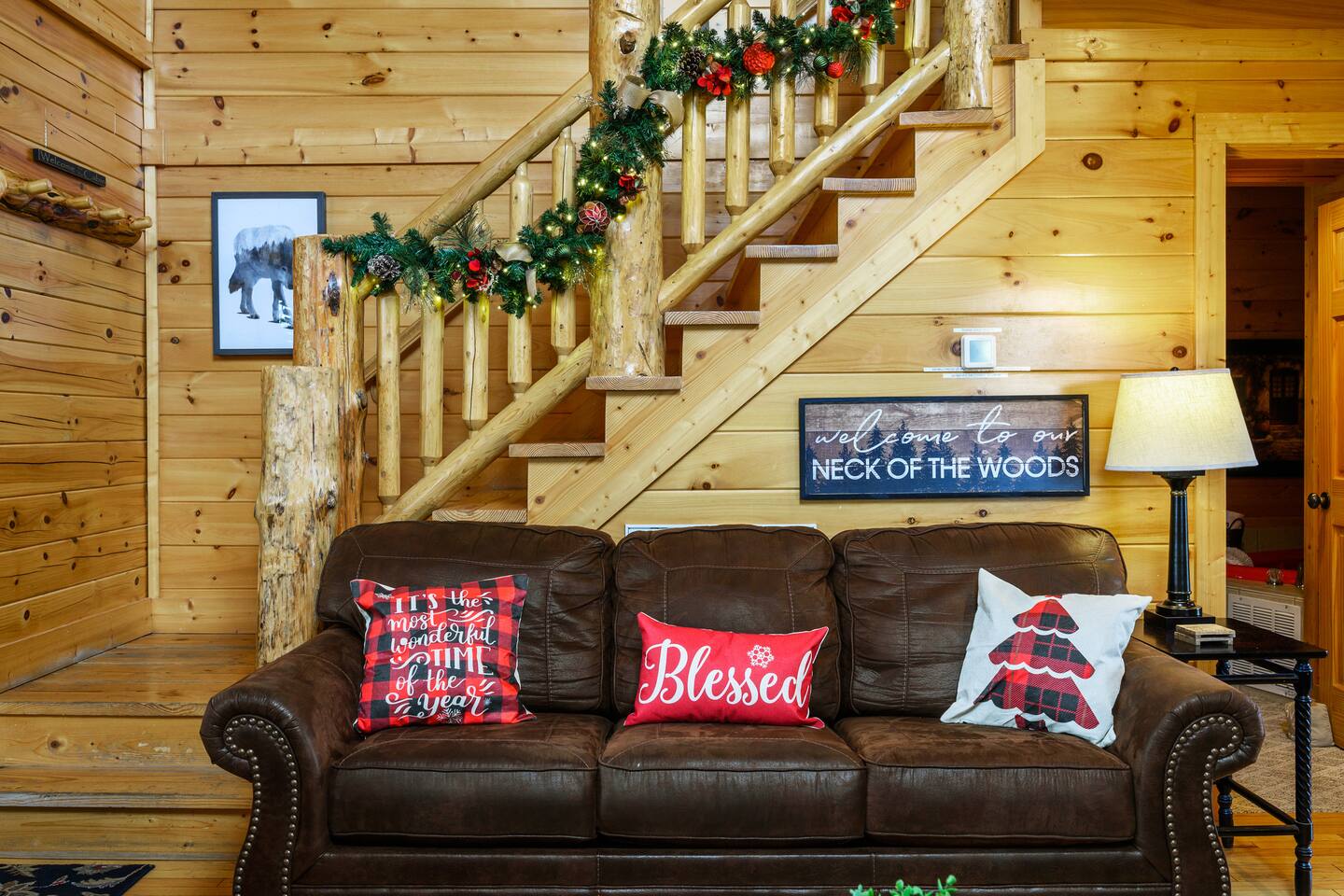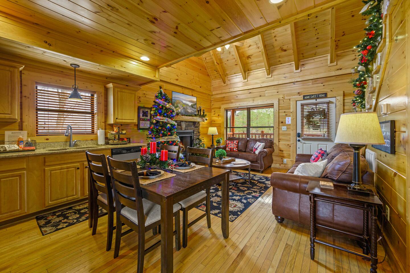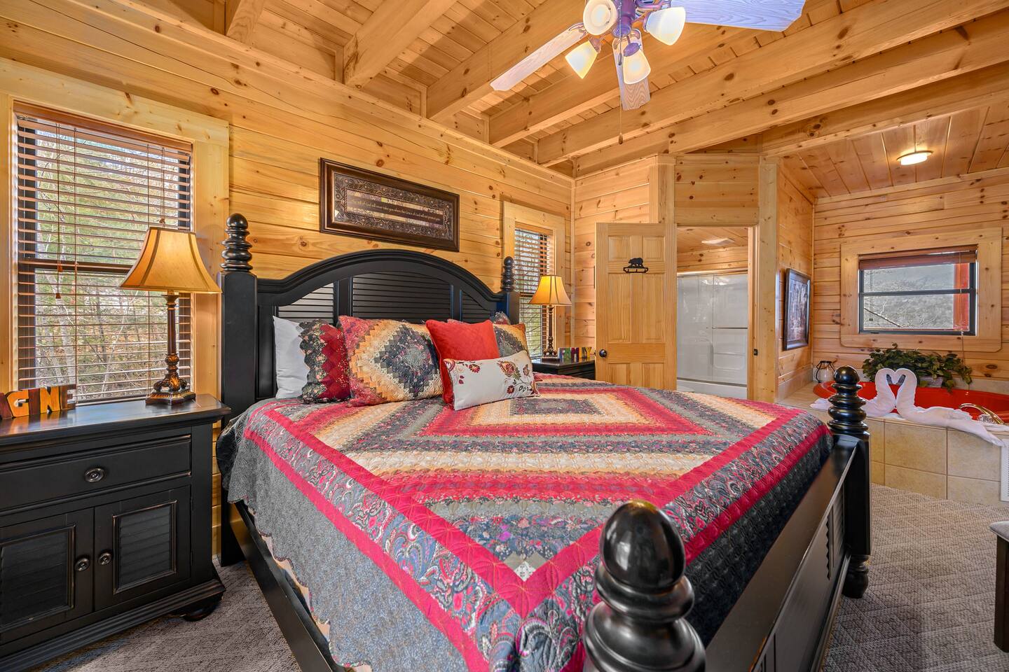 COVERED BRIDGE RESORT: ◻ 4 miles to downtown Pigeon Forge ◻ 15 miles to downtown Gatlinburg ◻ 9 miles to Dollywood ◻ Wide paved roads ◻ No steep, windy roads ◻ No mountain driving required ◻ Pool (Outdoor community pool open Memorial Day through Labor Day) ◻ Next to historic Walden's Creek (fishing) ◻ 10 minutes from the Foothills Parkway ◻ Close to the Cade's Cove side of the park ◻ Easy access to the Foothills Parkway ◻ Easy access to the Tail of the Dragon HILLTOP HIDEAWAY CABIN: ◻ Authentic log cabin ◻ Contactless self check-in ◻ Free high-speed WIFI ◻ Mountain views ◻ Close parking ◻ Private but not secluded ◻ All linens, towels, and pillows provided ◻ 15 miles to Chapel in the Hollow (weddings/elopements) STARTER KIT FREE OF CHARGE INCLUDES: ◻ Toilet paper ◻ Paper towels ◻ Hand soap ◻ Dishwasher detergent ◻ Dishwashing soap ◻ Garbage bags ◻ Keurig pods ◻ Laundry detergent ◻ Sanitizer MAIN BEDROOM SUITE INCLUDES: ◻ Comfortable king-size bed ◻ Full en suite bathroom, including bathtub ◻ Smart TV (BYO logins) ◻ Heart-shaped jacuzzi tub ◻ Full-size closet ◻ Luggage rack ◻ Hotel-style bathrobes ◻ Ceiling fan ◻ Hangers ◻ Handheld shower head ◻ Shampoo, conditioner, body wash UPSTAIRS BEDROOM SUITE INCLUDES: ◻ Comfortable king-size bed ◻ Full en suite bathroom, including bathtub ◻ Smart TV (bring your own logins) ◻ Wardrobe closet ◻ Luggage rack ◻ Hotel-style bathrobes ◻ Ceiling fan ◻ Hangers ◻ Handheld shower head ◻ Shampoo, conditioner, body wash LIVING ROOM/KITCHEN AREA: ◻ Electric fireplace ◻ Fully stocked kitchen ◻ Coffee pot (bring your own coffee) ◻ Toaster, waffle maker, blender, tea pot, cookware ◻ Keurig coffee maker ◻ Starter set of Keurig pods ◻ Starter cream and sugar ◻ Smart TV (bring your own logins) ◻ DVD player ◻ Cathedral ceilings ◻ Comfortable leather couches ◻ Sleeper sofa with all linens provided ◻ Washer/dryer combination LOFT AREA: ◻ Pool table ◻ Mountain views ◻ Seating for four ◻ Board games 1. Jenga 2. Mexican Train Dominoes 3. Sorry 4. Uno 5. Connect Four OUTDOOR SPACES: ◻ Large back deck with four rocking chairs ◻ Six-person hot tub ◻ Large front porch with two sitting chairs ◻ Gas grill with propane provided ◻ Mountain views